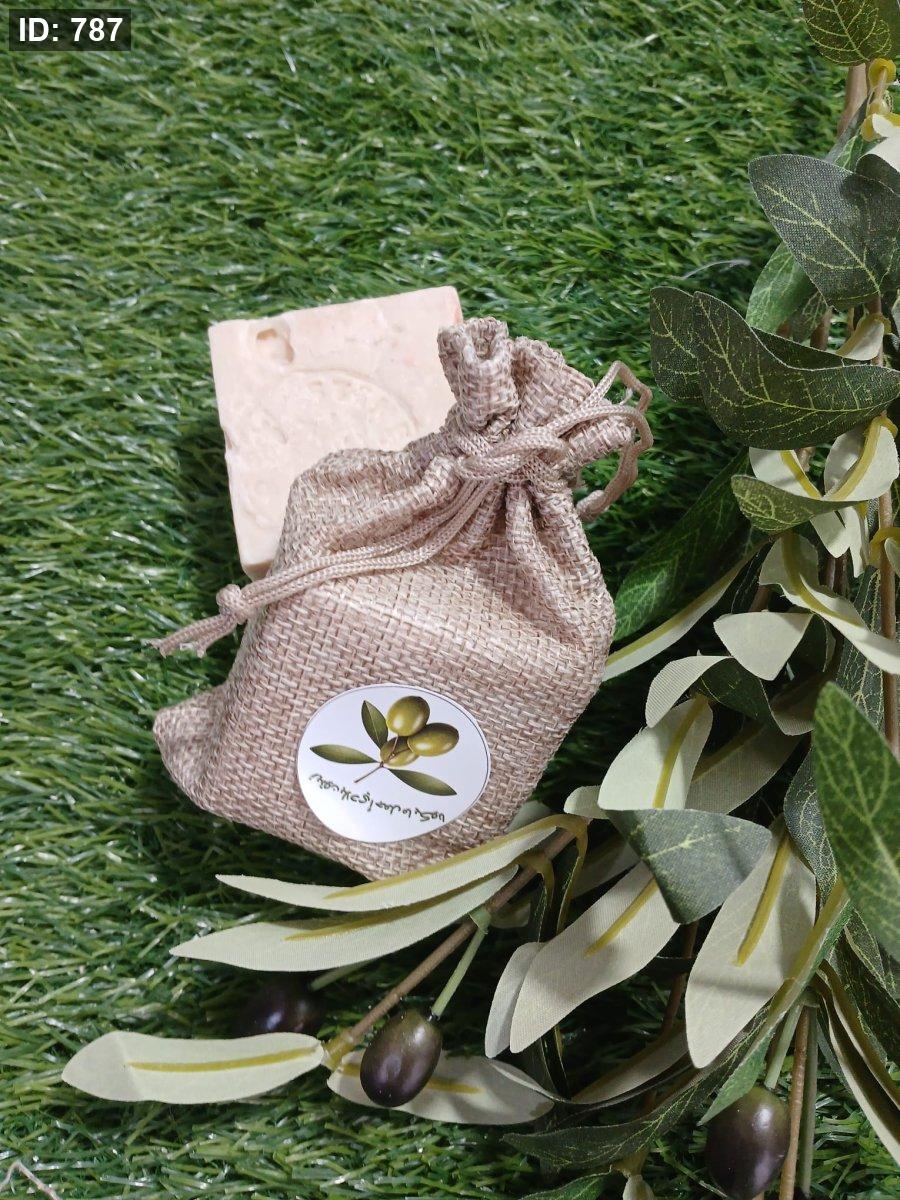 صابونة حجم ٥*٥*٤ + كيس الخيش + ملصق الزيتون مغلفة جاهزة ب ٦ شيكل 🫧🌿
