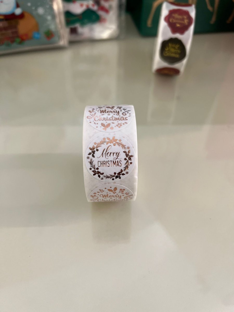 ملصقات الكريسماس ذهبي ٢.٥سم الرول ٥٠٠ملصق 🎅
