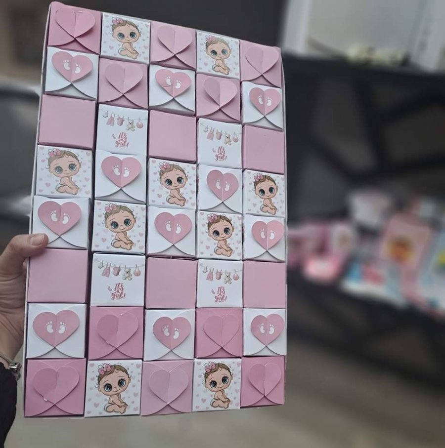 صينية بدون غطاء مع ٤٠ توزيعات زهر ومواليد بنت